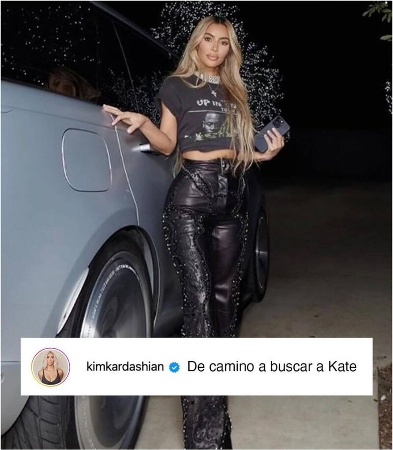 Volviendo a la más famosa de las Kardashian, l empresaria compartió vía Internet un par de fotos para lucir su look rockero y en la descripción escribió: “De camino a encontrar a Kate”.