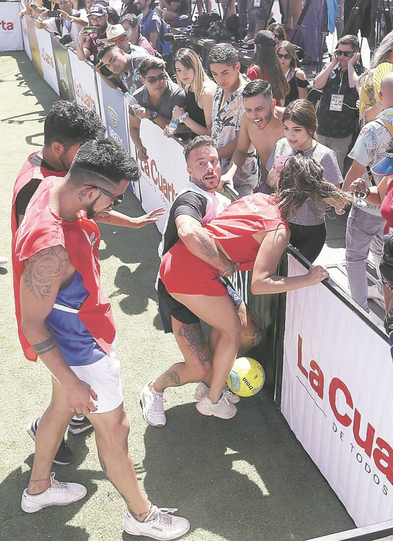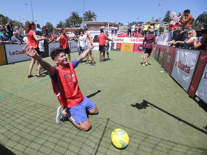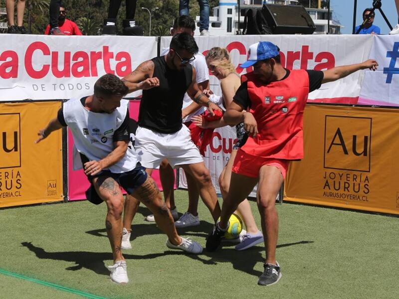 Ayer fue el turno de la actividad deportiva en la campaña de los candidatos por ser los nuevos soberanos del Festival de Viña 2019. El evento, denominado "4x4", se llevó a cabo por la mañana en la Avenida Perú con Los Héroes, sector que rápidamente aglutinó a un centenar de personas en torno a los equipos que conformó cada aspirante al cetro, y que mostró una serie de intensos encuentros donde hubo goles, risas y roces.