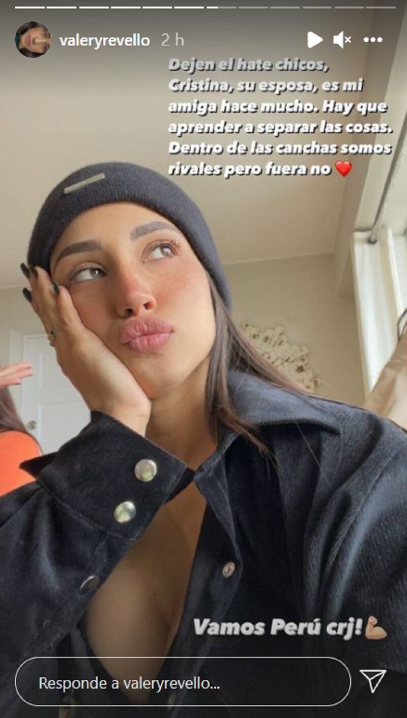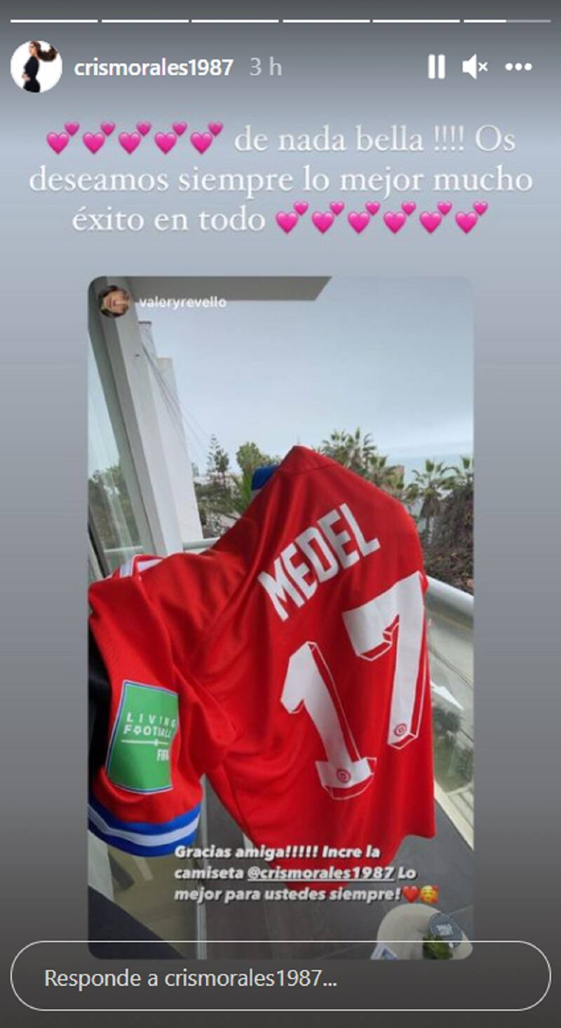 Tras la polémica, la mujer de Gary Medel también aclaró el tema, demostrando su buena relación y amistad con la joven y el futbolista peruano. "De nada bella, os deseamos lo mejor, mucho éxito en todo", escribió Cristina Morales en sus historias y buscando finalizar la polémica.