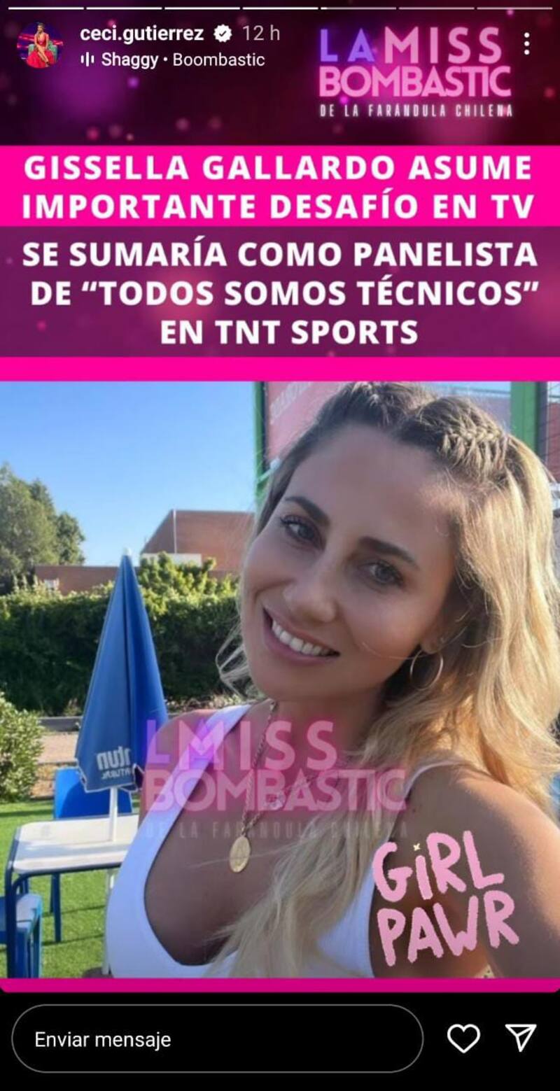 “Gissella Gallardo asume importante desafío en tv. Se sumaría como panelista de Todos Somos Técnicos en TNT Sports”, señaló Gutiérrez revelando el especial proyecto que enfrentaría la periodista.