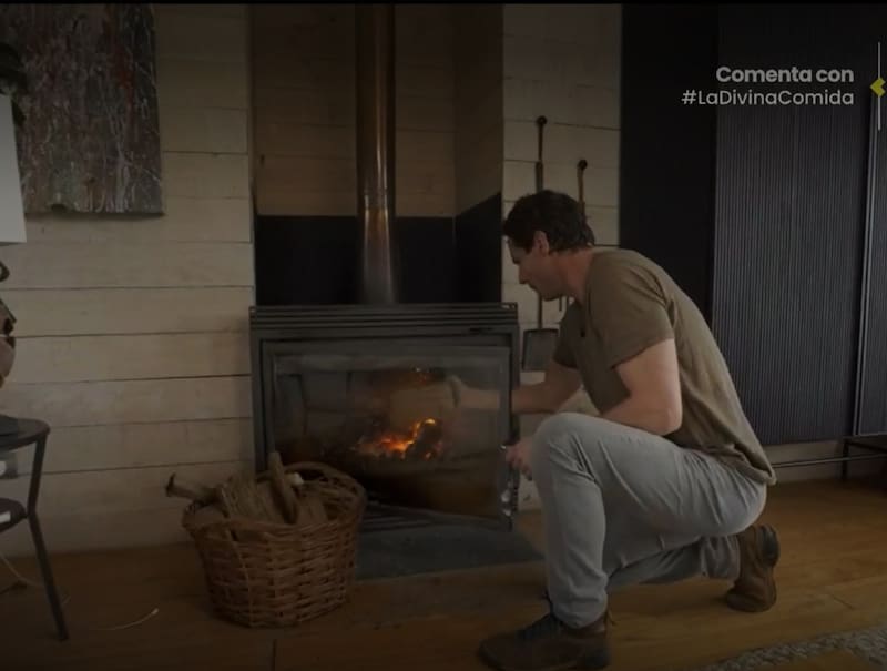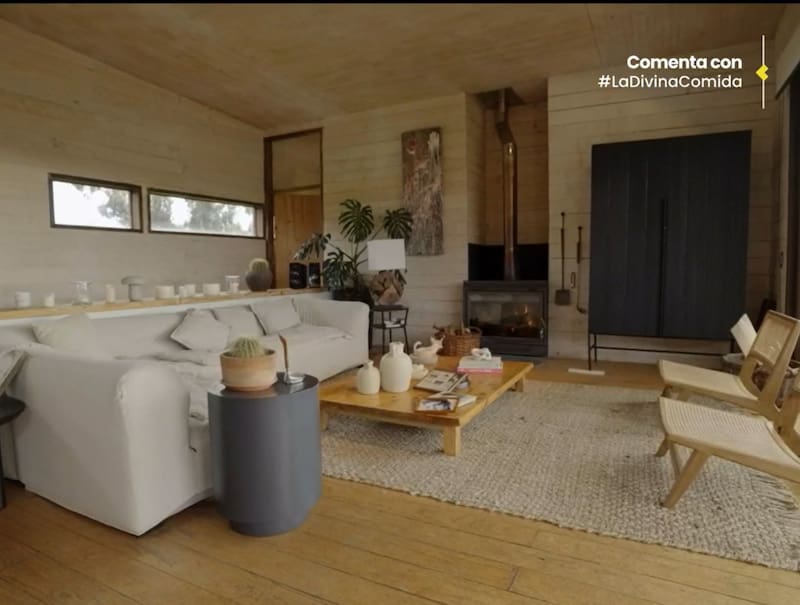 Tras la puerta de entrada, Gonzalo desembocó en una amplia sala que unía cocina, comedor de diario y un living, el que en el fondo tenía una chimenea. En este sector se encontraba su esposa, la reconocida modelo y comunicadora Kika Silva. “Esta casa es con pura leña”, aseguró él sobre el método de calefacción.