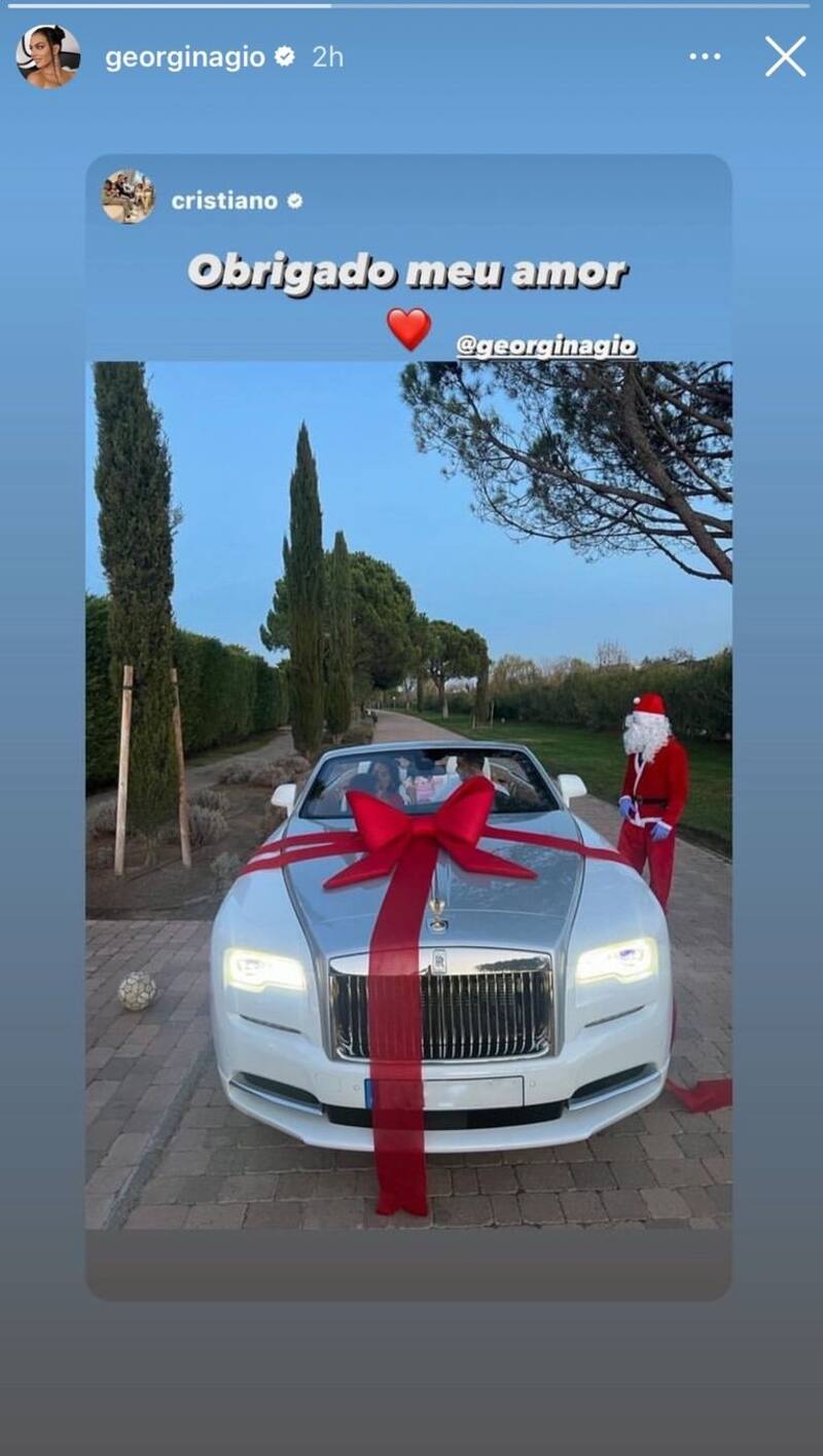 Georgina conoce muy bien los gustos del goleador, quien vestida de rojo y rodeada de sus hijos, le entregó el Roll-Royce descapotable color plata que se suma a la colección personal de autos de lujo de Cristiano.