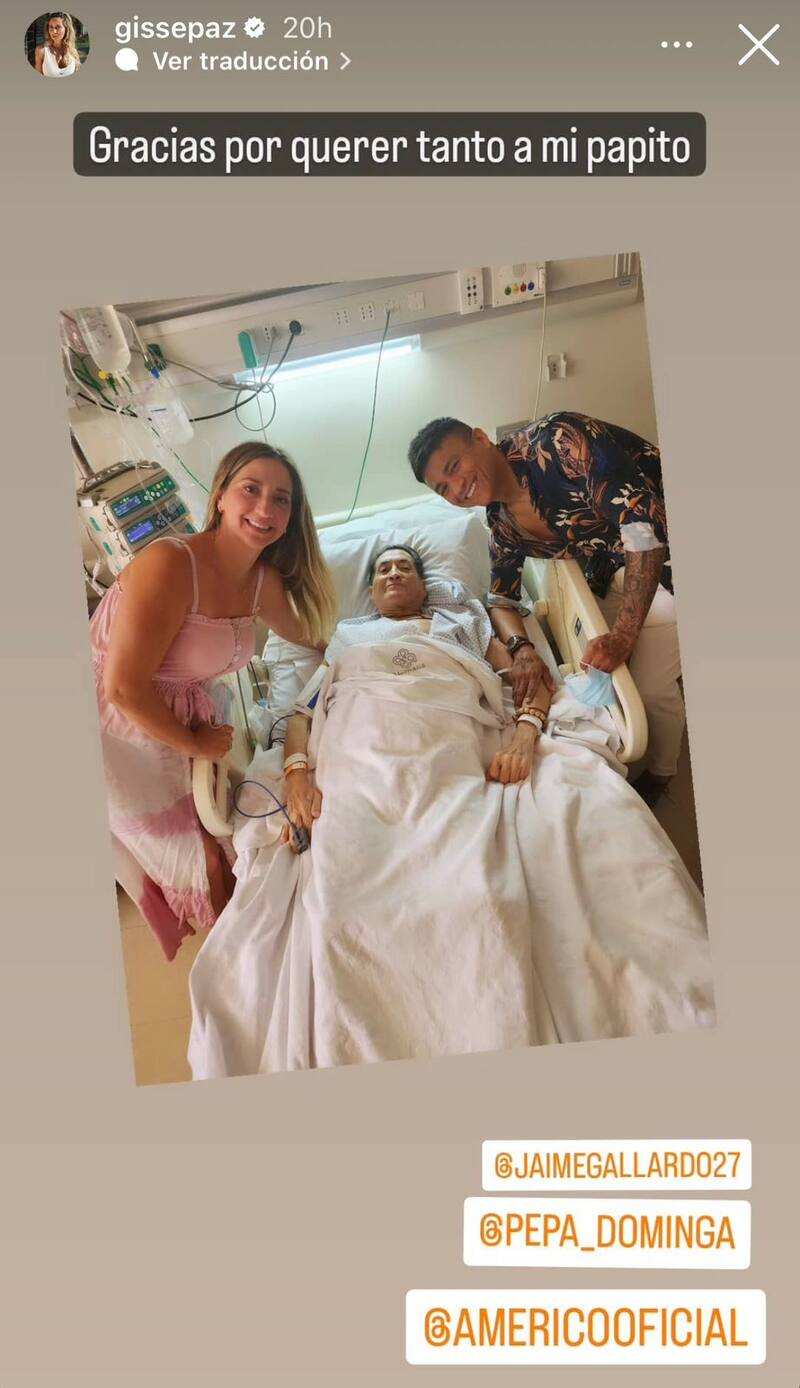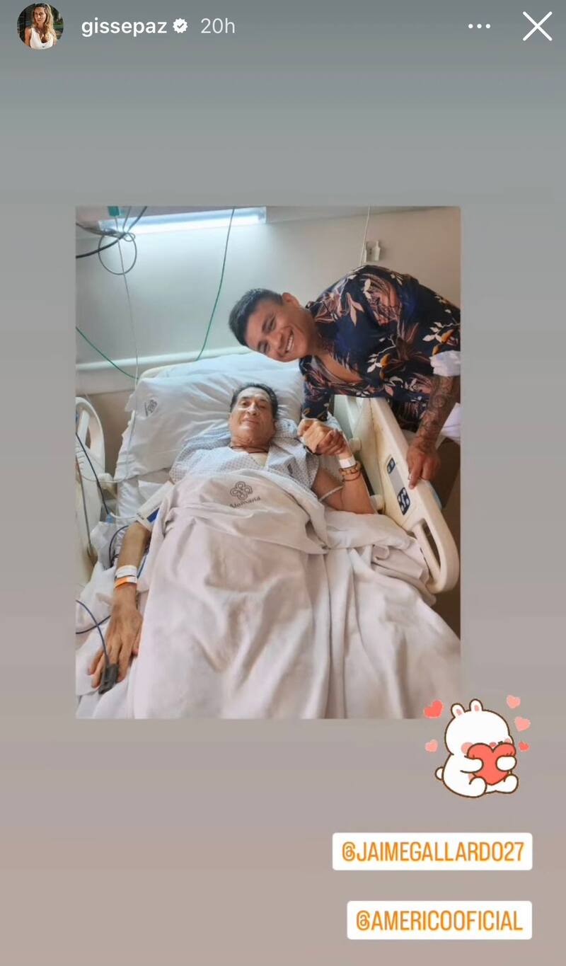 La periodista, quien actualmente figura como panelista de TNT Sports, subió dos historias donde agradeció la visita de Américo a su padre, Jaime Gallardo, quien se encuentra hospitalizado producto del agresivo cáncer que padece.