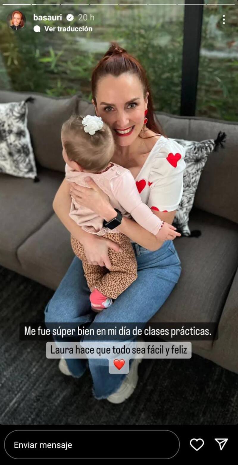 “Me fue súper bien en mi día de clases prácticas. Laura hace que todo sea fácil y feliz”, señaló Basauri posando con la pequeña en sus brazos, sorprendiendo con los registros.