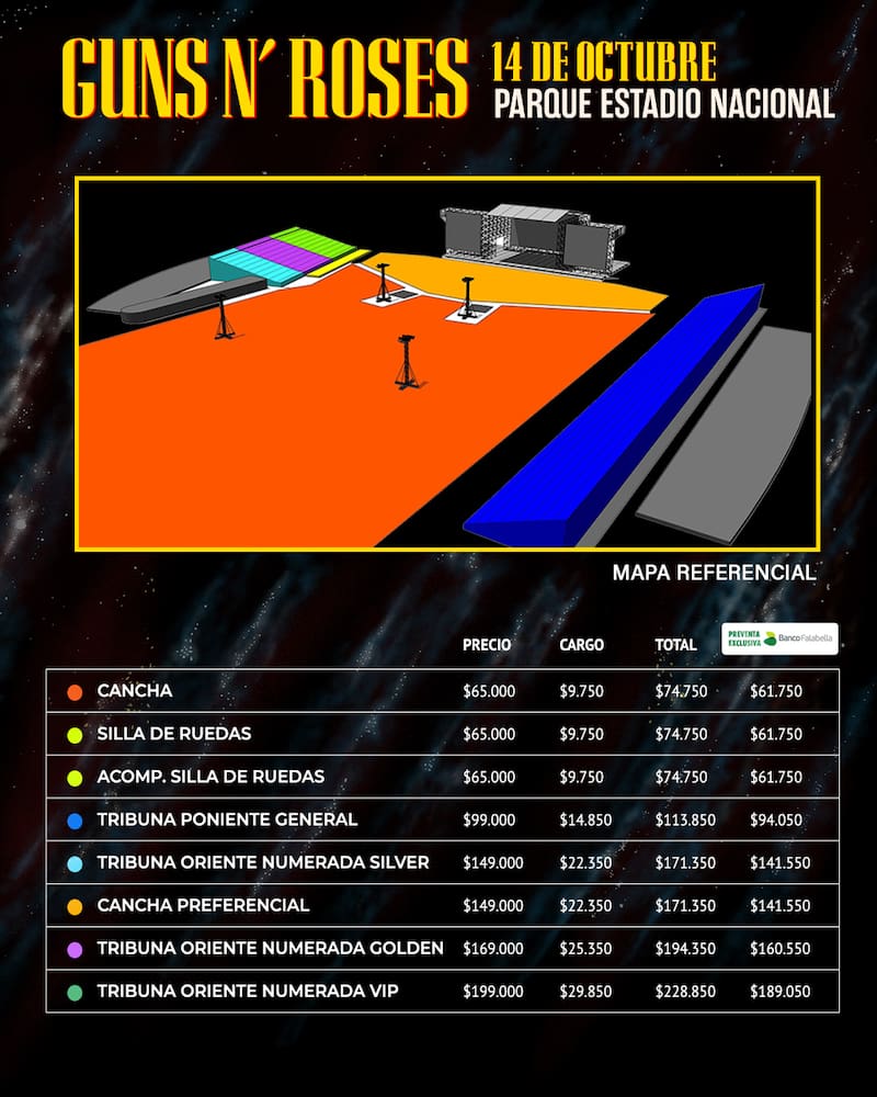Por Paulo QuinterosGuns N’ Roses en Chile 2025: Estos son los precios de las entradas para su show en el Estadio Nacional