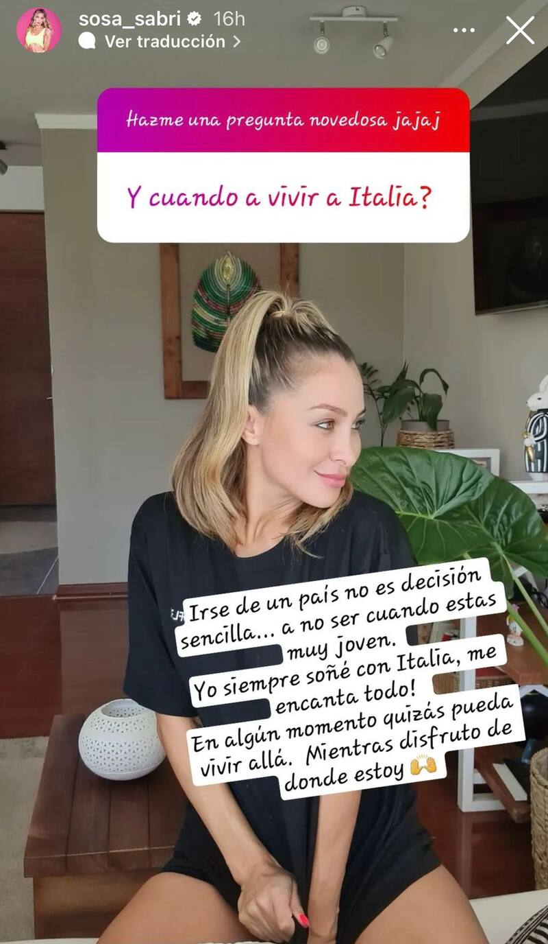 “Irse de un país no es una decisión sencilla. A no ser cuando estás muy joven. Yo siempre soñé con Italia, me encanta todo. En algún momento quizás pueda vivir allá. Mientras disfruto de donde estoy”, aclaró.