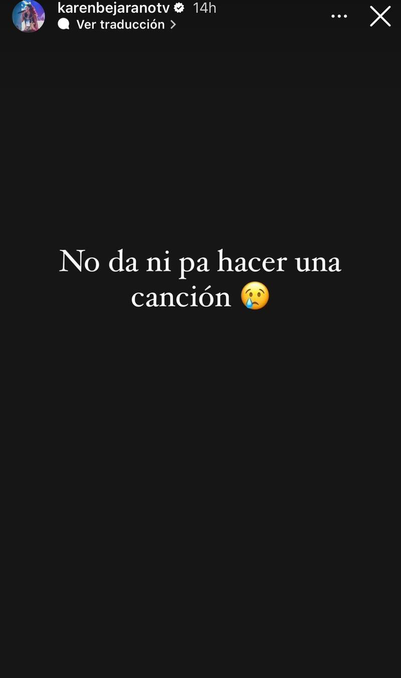 “Hace tiempo no me sentía tan triste”, escribió de entrada la ex Buenos Días a Todos. Y en esa misma línea, agregó: “no da ni pa’ hacer una canción”.