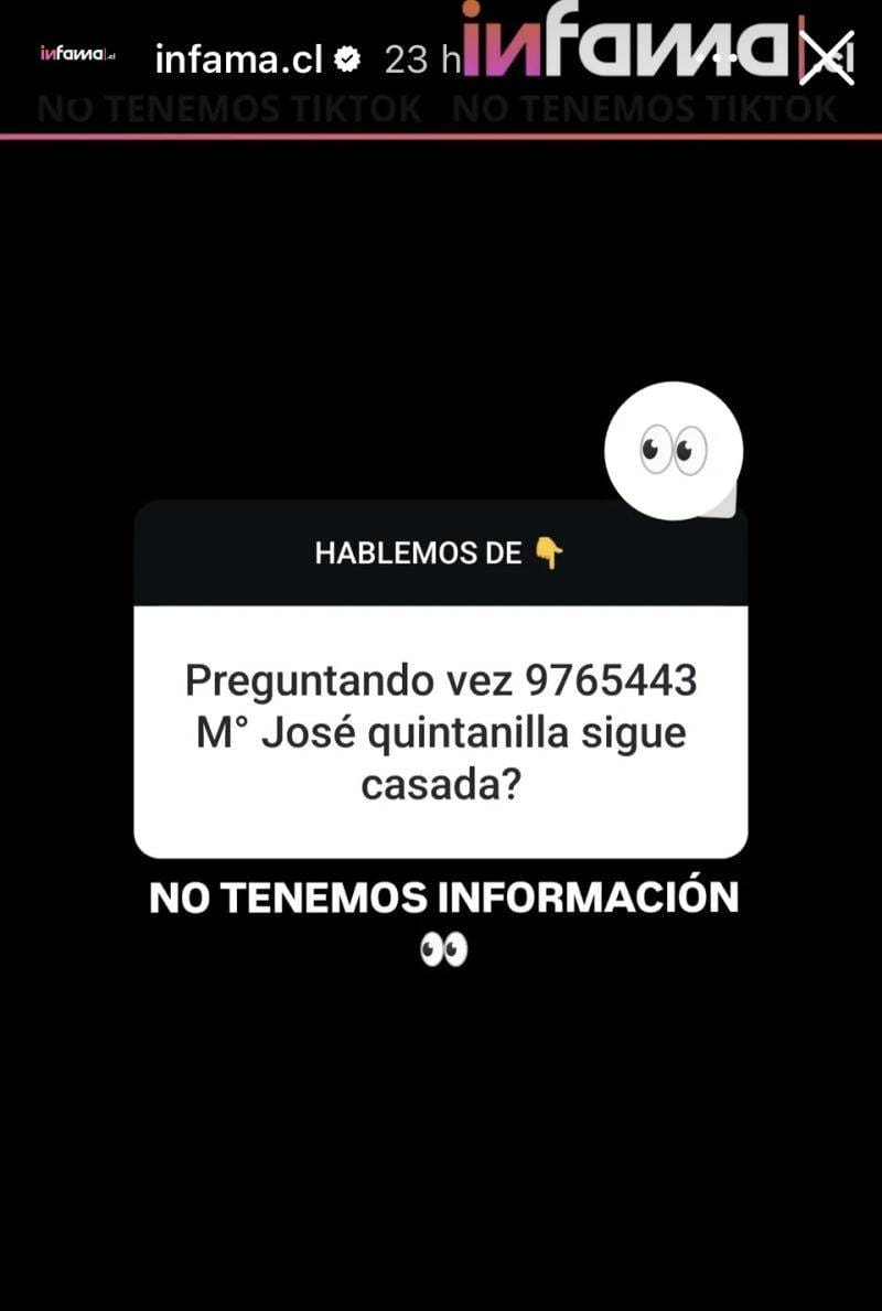 “¿María José Quintanilla sigue casada?”, les consultaron a través de la mencionada plataforma virtual. “No tenemos información”, aclararon ellos de vuelta.