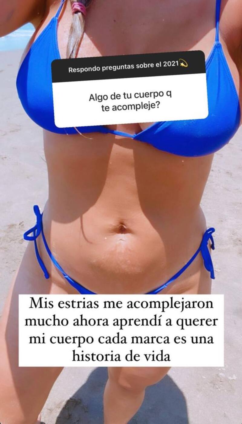 “Mis estrías me acomplejaron mucho ahora. Aprendí a querer mi cuerpo, cada marca es una historia de vida”, afirmó Prieto al compartir una instantánea de su vientre al natural con marcas.