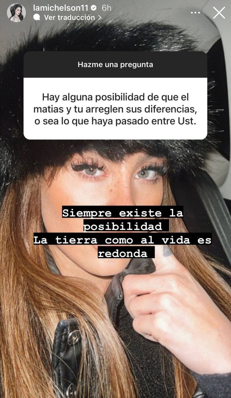 Acto seguido, la Nacha no se complicó y respondió con una profunda reflexión. “Siempre existe esa posibilidad. La tierra como la vida, es redonda”, complementó Michelson en la mencionada plataforma virtual.