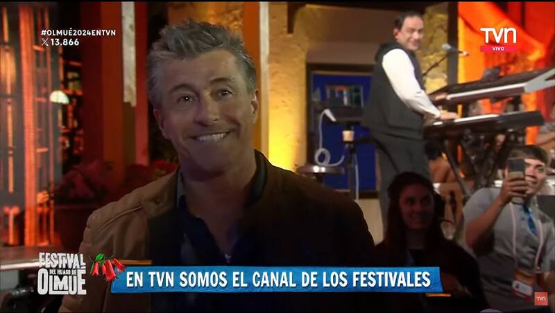 Como es tradicional, luego de que Eduardo Fuentes e Ivette Vergara dieran la bienvenida, los asistentes comenzaron a pedir el beso de los anfitriones. Sin embargo, desde el público, Fernando Solabarrieta miraba de cerca, ya que llegó hasta el festival para apoyar a su esposa.