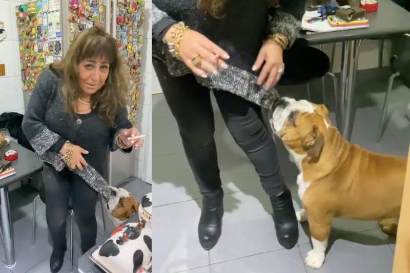 La mascota fortachona empezó a tironear del chaleco de la abogada, arrastrándola por toda su cocina ante su total desesperación.