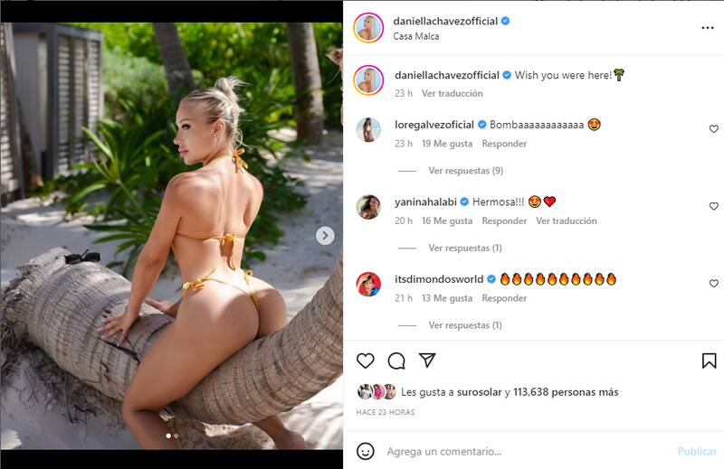 La modelo, Daniella Chávez enamoró a sus seguidores tras compartir en redes sociales unas sensuales fotografías luciendo su figura en traje de baño.