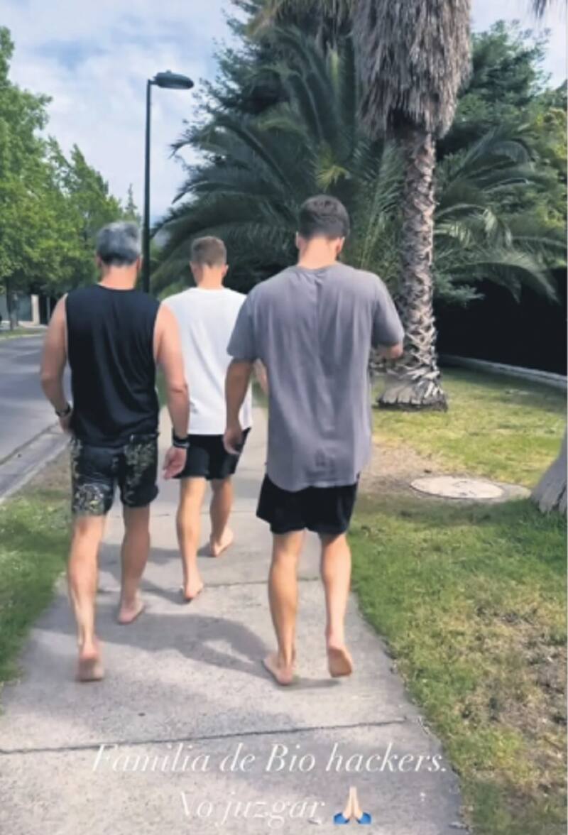 A través de redes sociales, Diana Bolocco llamó la atención al compartir una postal de sus hijos Diego y Pedro Cisternas, junto a su esposo Cristián Sánchez, caminando descalzos por la vereda en la calle.