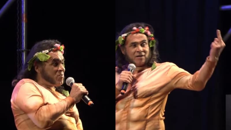 Vestido como una especie de Adán, como Dios lo trajo al mundo, la rutina del comediante se basó en chistes sobre el sexo, pero que no tuvieron ni pies ni cabeza, y con menos remate que Salomón Rodríguez en Colo Colo. El resultado: un público que lo esperó, pero que después vio colmada su paciencia.
