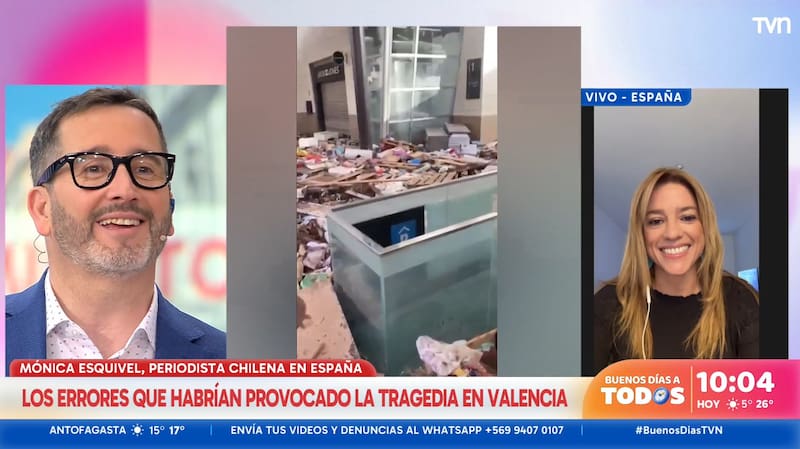 El programa dedicó una sección para hablar sobre el fenómeno de lluvias que dejan más de 200 muertos en la ciudad española y para conocer un testimonio desde el lugar, tomaron contacto con la periodista chilena Mónica Esquivel, que reside en ese país hace algunos años.