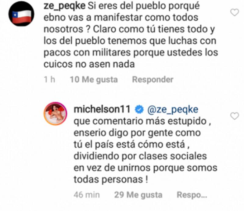 Las situación que atraviesa Chile con protestas masivas a lo largo del país se han transformado en el tema más comentado de las últimas jornadas. A tal punto que reconocidos rostros y famosillos de la farándula nacional se han hecho presente a la hora de dar su parecer frente a las manifestaciones. Y en esta ocasión lo hizo la ex "Resistiré", Ignacia Michelson a través de sus redes sociales.