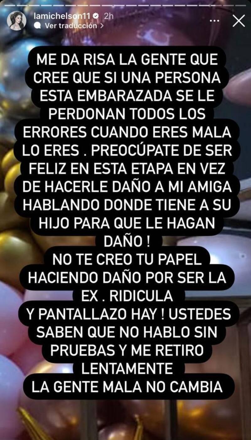 Además la exchica reality comentó que tiene pruebas sobre lo que expuso en la historia de Instagram. “Pantallazos hay. Ustedes saben que no hablo sin pruebas y me retiro lentamente, la gente no cambia”, comentó.