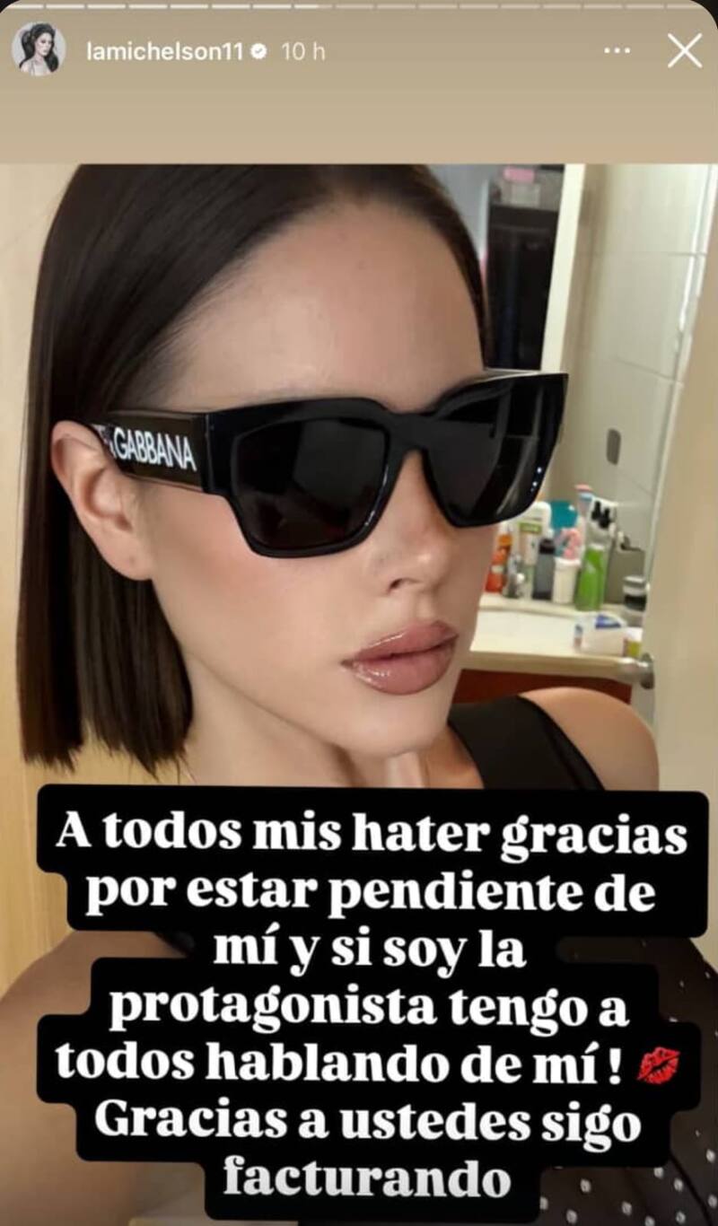 “A todos mis haters gracias por estar pendiente de mí y sí, soy la protagonista, tengo a todos hablando de mí”, escribió una storie de Instagram.