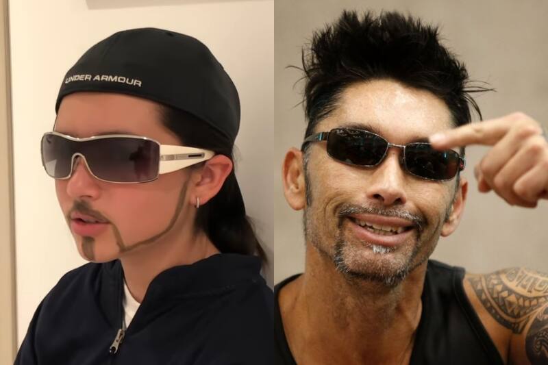 La niña, nacida del matrimonio del "Chino" con Paula Pavic, aparece en primer plano, seria, vestida como su padre: lentes oscuros, gorra hacia atrás y una delgada barba.