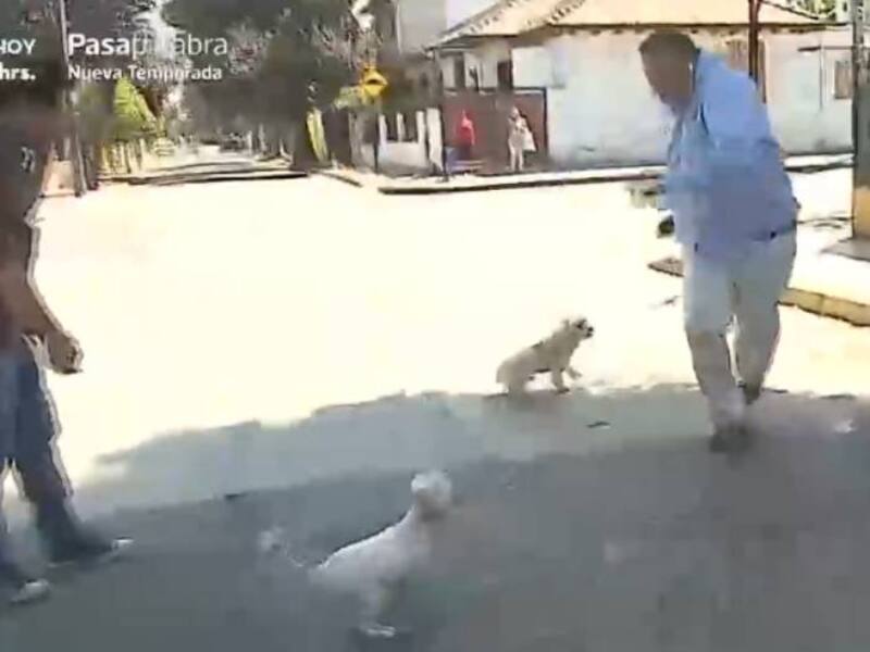 De hecho, el ex "Morandé con Compañía" estaba frente a la cámara cuando debió salir corriendo para arrancar de los canes. "Me mordió, me mordió", alegó mientras mostraba un picotón que le hicieron en una de sus piernas.