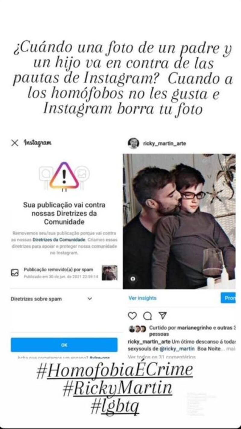 Esta imagen había sido compartida por una cuenta brasileña de fans del músico (llamada "ricky_martin_arte"), grupo que denunció que Instagram había decidido borrar la foto de la red social, argumentando que incumplía con sus normas de convivencia.