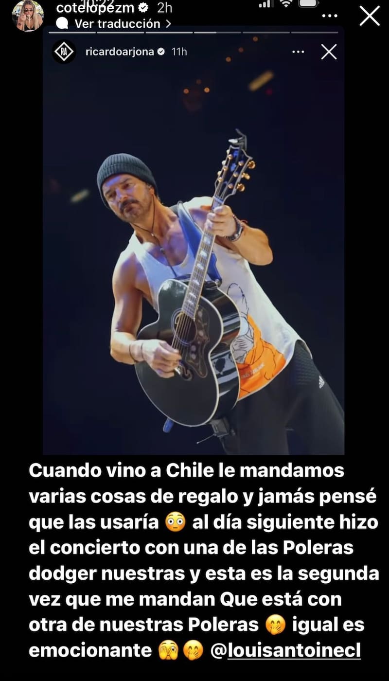 “Al día siguiente hizo el concierto con una de las poleras dodger, nuestras y esta es la segunda vez que me la mandan”, complementó junto a una imagen donde el guatemalteco aparece con la mencionada vestimenta.