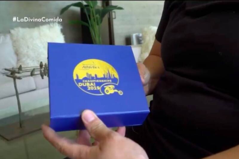 "Posavasos...", se apuró en contestar Francisca, quien de una aclaró que "este es mi premio más importante, esta es la medalla de oro cuando salí campeona mundial en lanzamiento de la bala en Dubai el 2019".