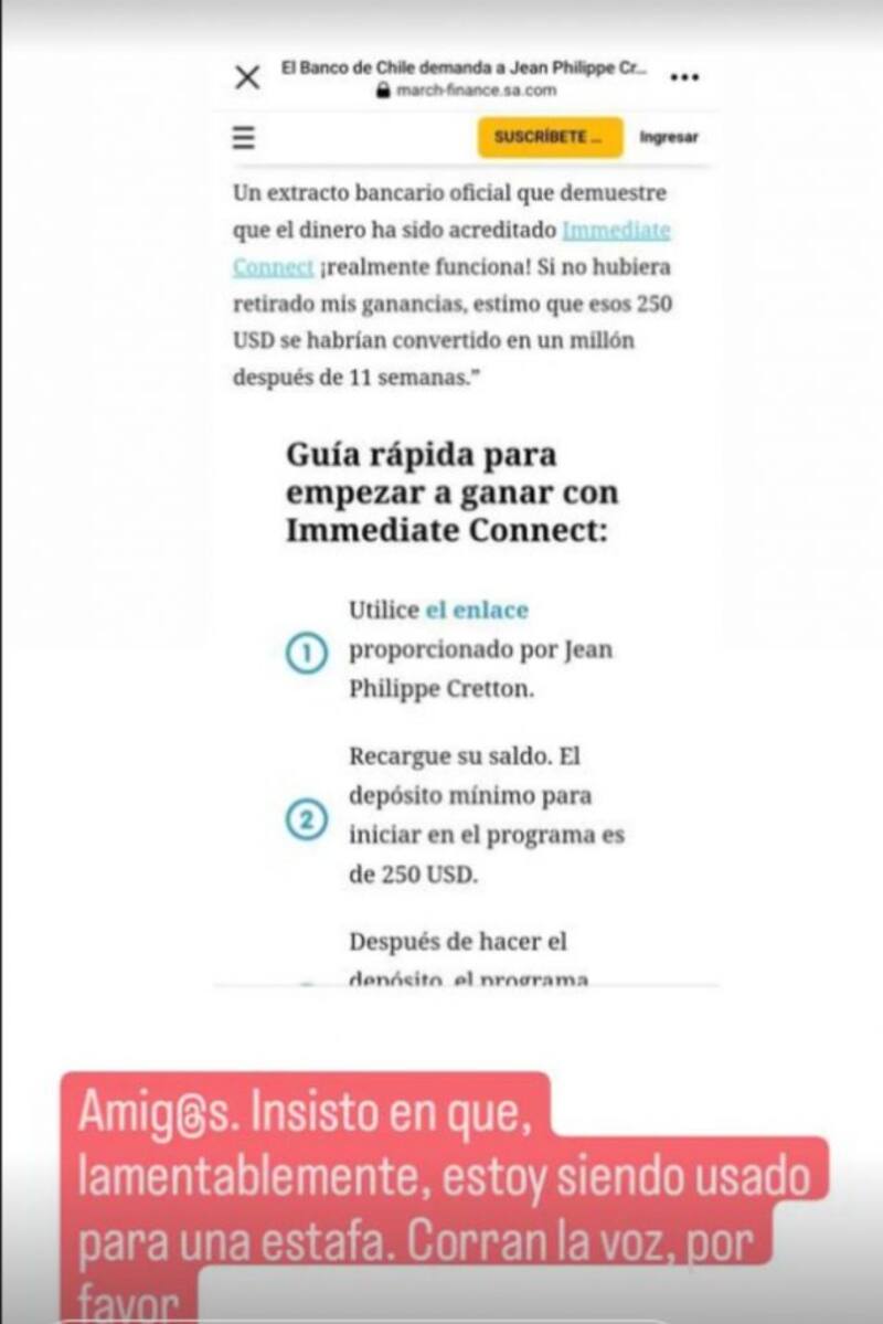 “El Banco de Chile demanda a Jean Philippe Cretton por lo que dijo en directo”, indicó, para luego aclarar que el link era una estafa.
