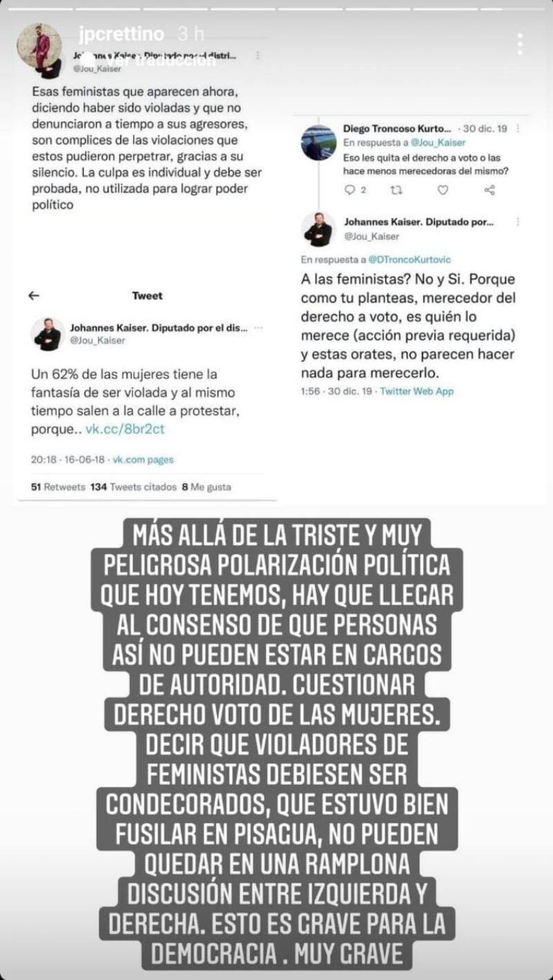 El animador de CHV, Jean Philippe Cretton utilizó sus redes sociales para reflexionar tras la polémica del ex diputado del Partido Republicano, Johannes Kaiser y sus dichos misóginos.