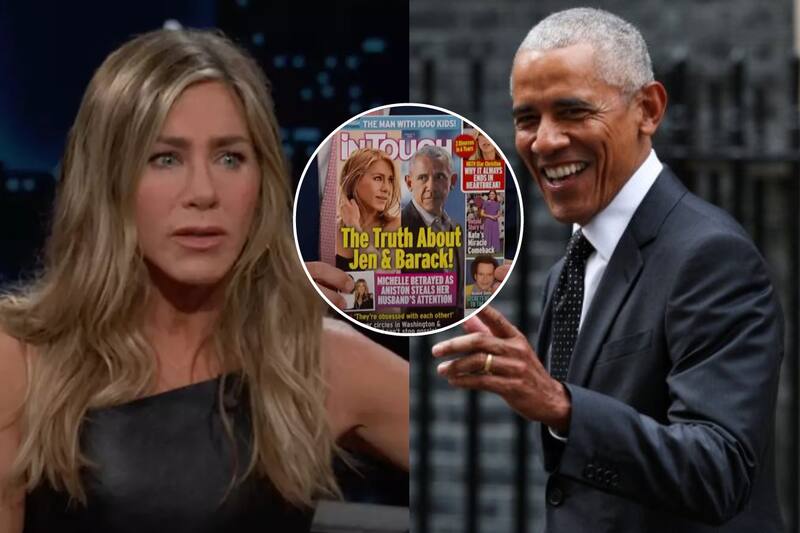 Kimmel le mostró un ejemplar de la revista In Touch de agosto de 2024, que incluía un artículo titulado: “¡La verdad sobre Jen y Barack!”. Además, se mencionaba una posible “traición” a Michelle Obama.