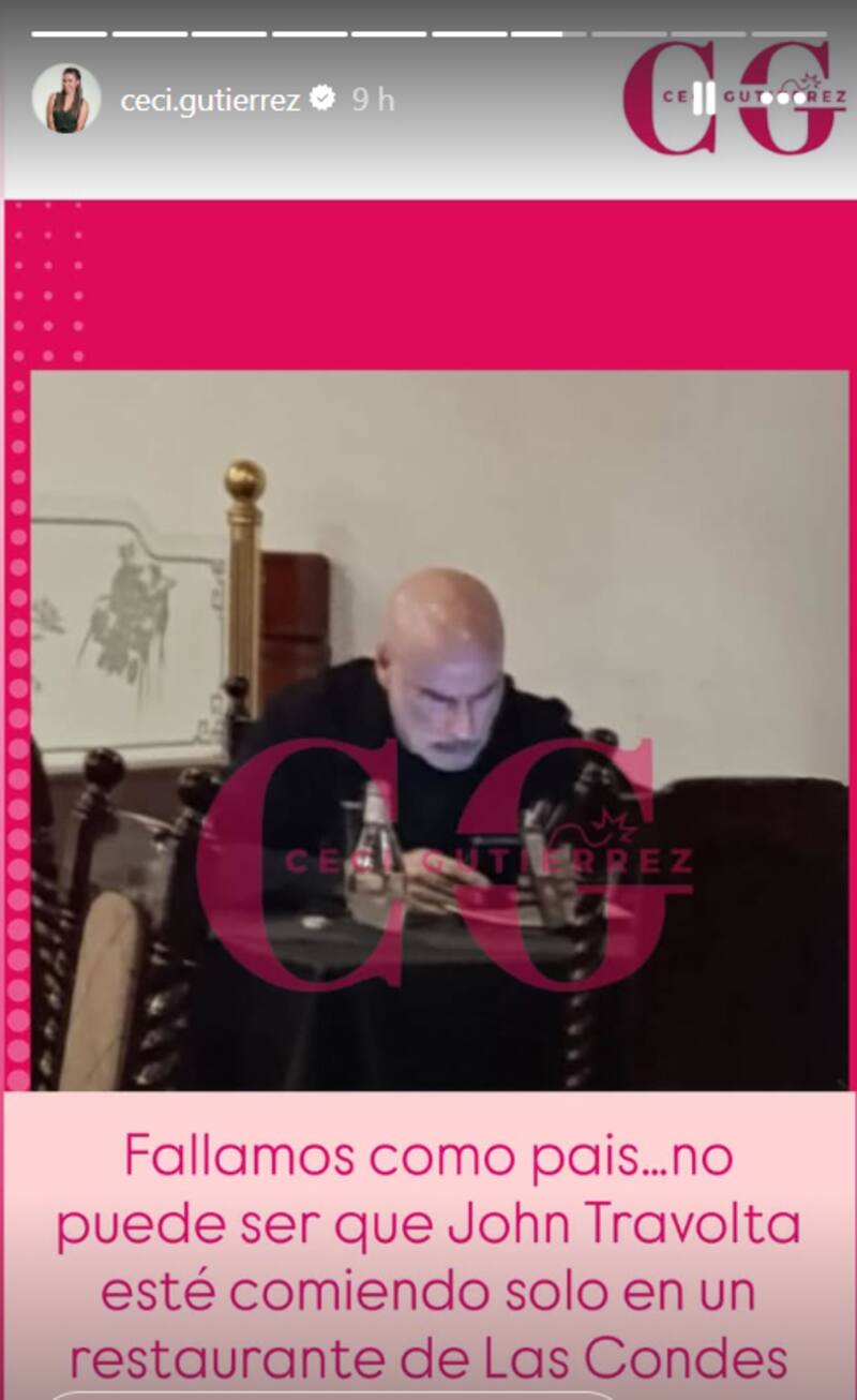 Por su parte, Cecilia Gutiérrez compartió una imagen del protagonista de Grease, en un restaurante en Las Condes.