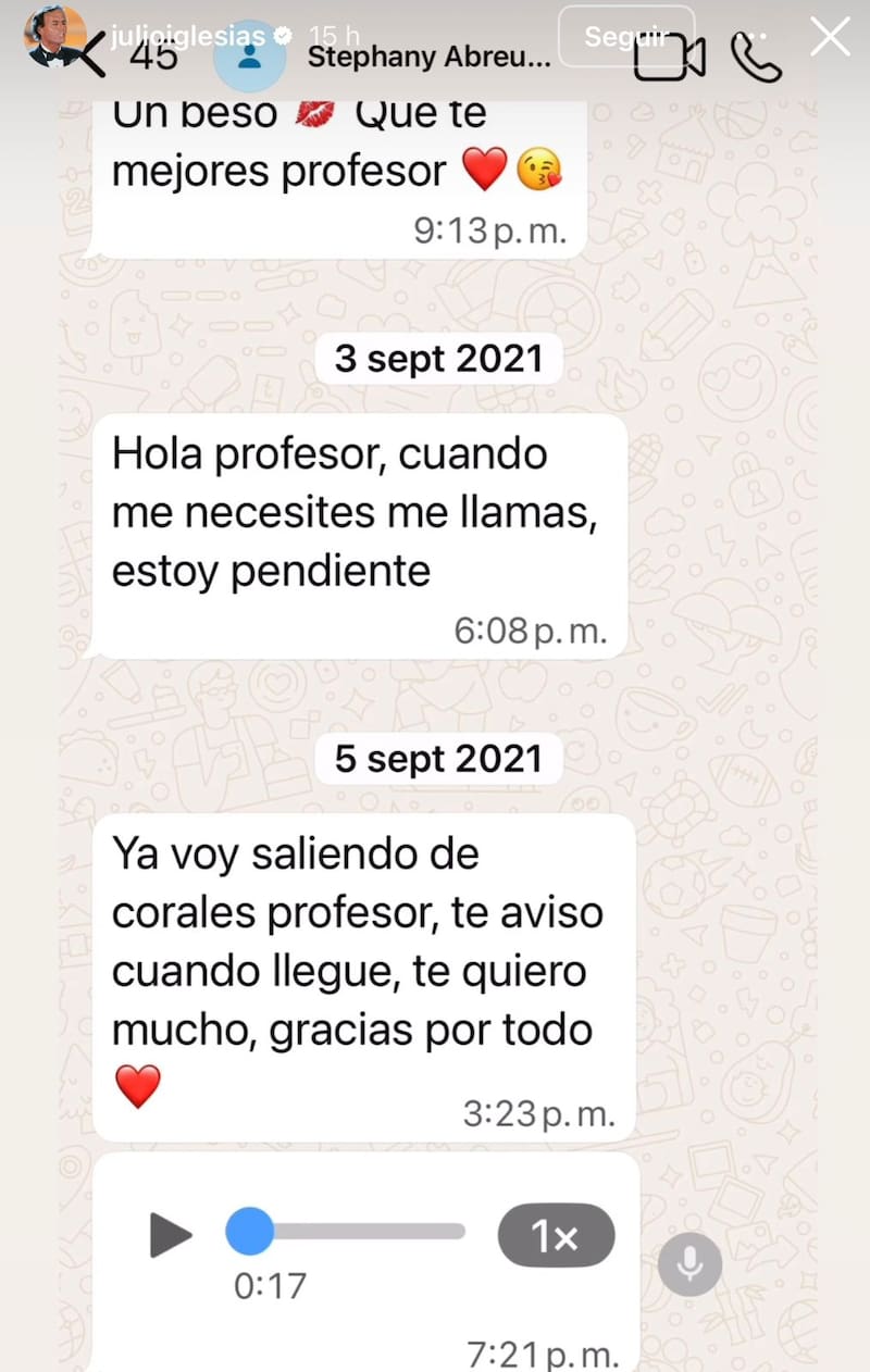 Cabe destacar que los mensajes publicados por Julio Iglesia en la mencionada plataforma virtual surgieron luego de que la Fiscalía de la Audiencia Nacional española rechazara, por el momento, la petición de su abogado de que se acepte su personación en la investigación en su contra, la cual busca tener acceso directo al contenido de la denuncia por presuntos delitos sexuales que se investiga.