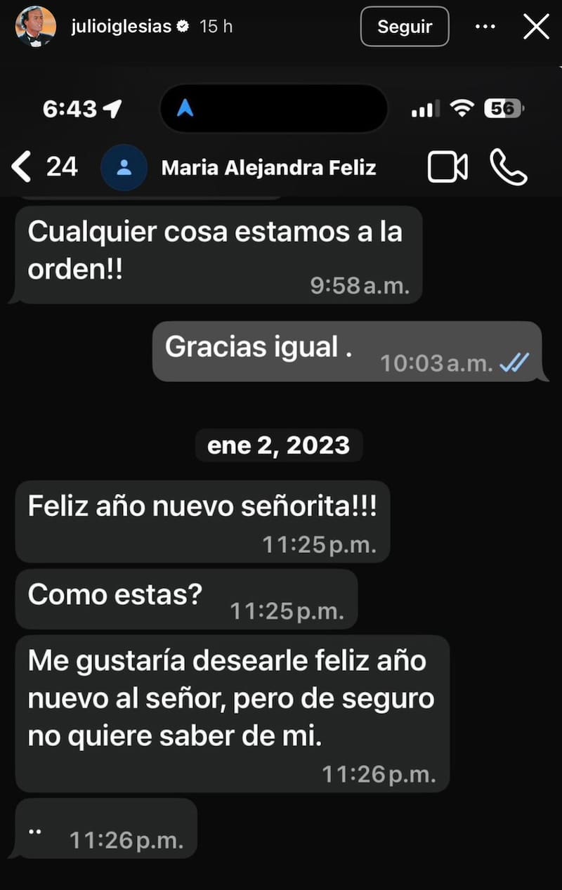 Pero eso no es todo, pues ahora el intérprete europeo, para reafirmar su postura, publicó en su perfil de Instagram unos supuestos mensajes por WhatsApp que habría recibido por parte de las dos trabajadores que ahora lo denuncian.