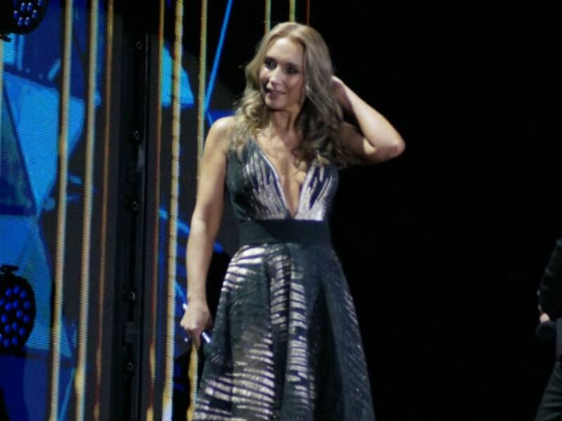 En la primera noche del festival de la Independencia de Talca 2019, lo que más destacó fue el despampanante vestido de Karen Doggenweiler. Acompañada de Christian Sánchez, la animadora de TVN lució un vestido de Organza color negro con aplicaciones en dorado.