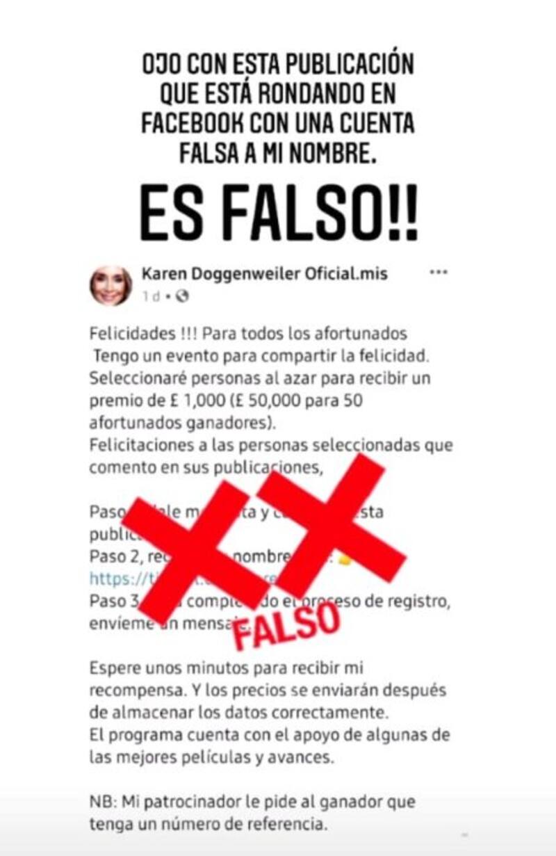 Karen Doggenweiler alertó a seguidores por estafa que realizan con su nombre en Facebook