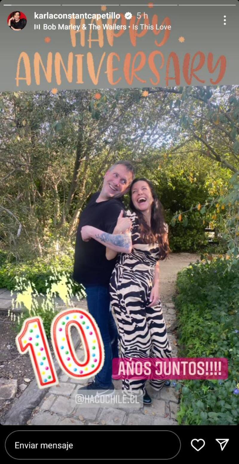 A través de sus historias de Instagram, la ex conductora de The Covers posteó dos fotos junto a su esposo, Andrés Villaseca celebrando en la web su aniversario de pareja.