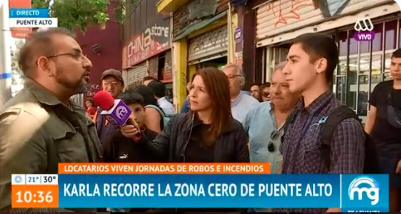El canal ayer la mandó a Puente Alto con un equipo compuesto por puras mujeres y la misión de mostrar otra pata de la contingencia: lo mal que la están pasando locatarios que han sido víctimas de robos y destrucción de sus negocios por turbas.