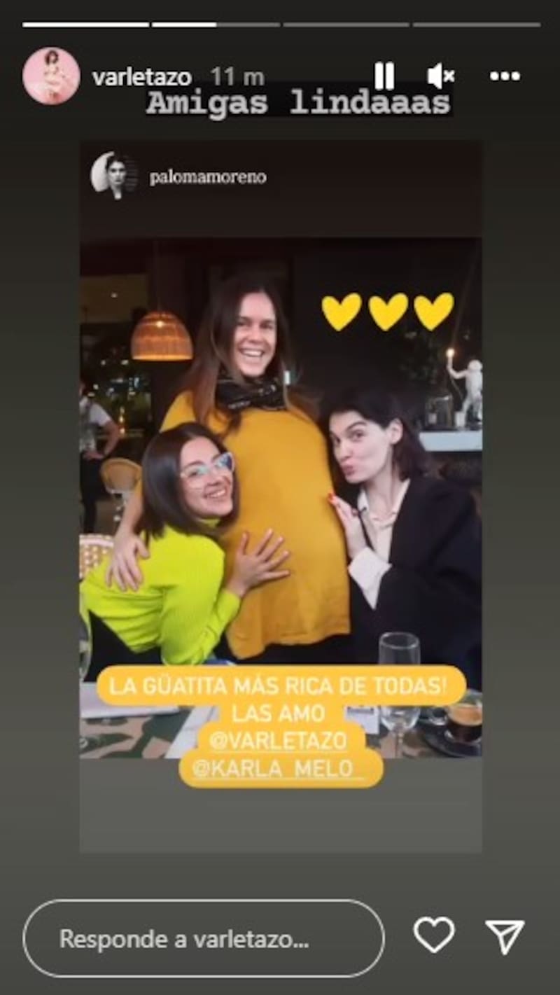 “La guatita más rica de todas, las amo”, escribió la actriz Paloma Moreno celebrando la junta, mientras que Varleta detalló en sus historias “amigas lindas” para guardar el especial momento.