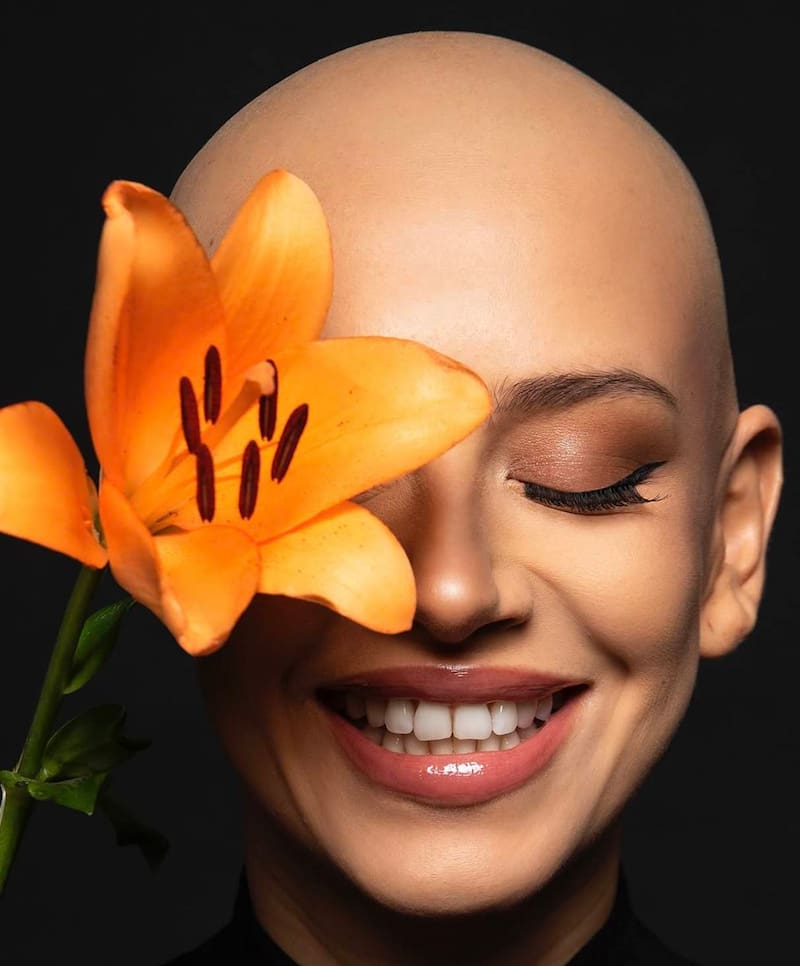 Eso sí, este jueves la cantante compartió un posteo diferente, donde mostró su actual aspecto físico. En la postal, en la que aparece junto a una azucena naranja, dejó en evidencia que ya no tiene cabello.