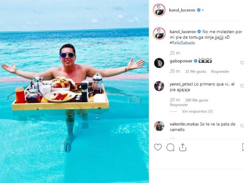En este lugar, el comunicador compartió una foto inmerso en la piscina junto a un contundente desayuno flotante. Más allá de la opulencia, sus seguidores se detuvieron en un "escalofriante" detalle: el pie del comunicador.