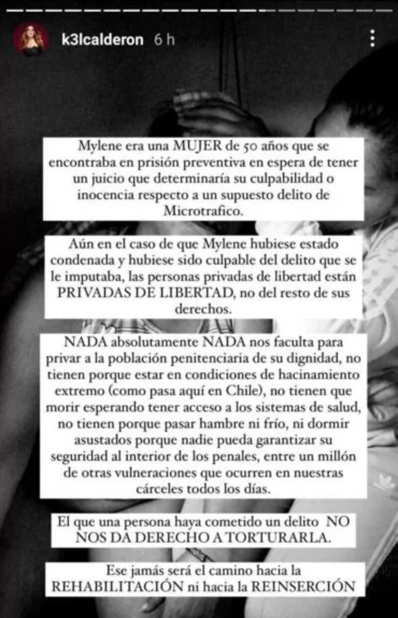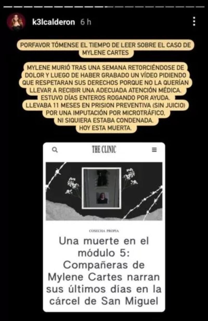 Durante la jornada de este jueves, Kel Calderón alzó la voz tras la muerte el pasado fin de semana de Mylene Cartes, interna de la cárcel de San Miguel que presentaba dolores estomacales y que no recibió la atención necesaria.