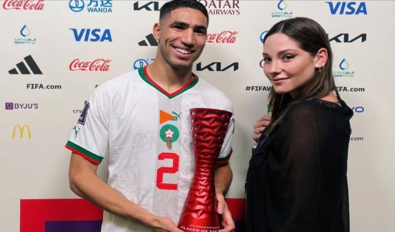 La influencer chilena posó con el defensa hispano-marroquí luego de que triunfaran 2-1 en el mundial.
