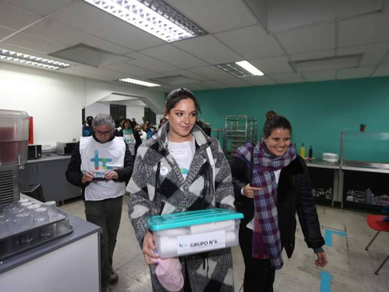 La reconocida influencer participó en la actividad clásica del Hogar de Cristo, junto a otros personajes públicos repartiendo pan y café por Santiago.