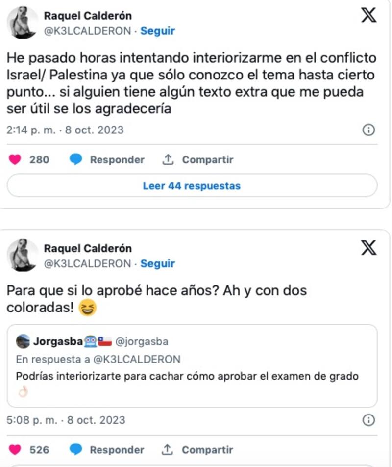 “He pasado horas intentando interiorizarme en el conflicto Israel/ Palestina, ya que solo conozco el tema hasta cierto punto… Si alguien tiene algún texto extra que me pueda ser útil, se los agradecería”, preguntó en la red social.