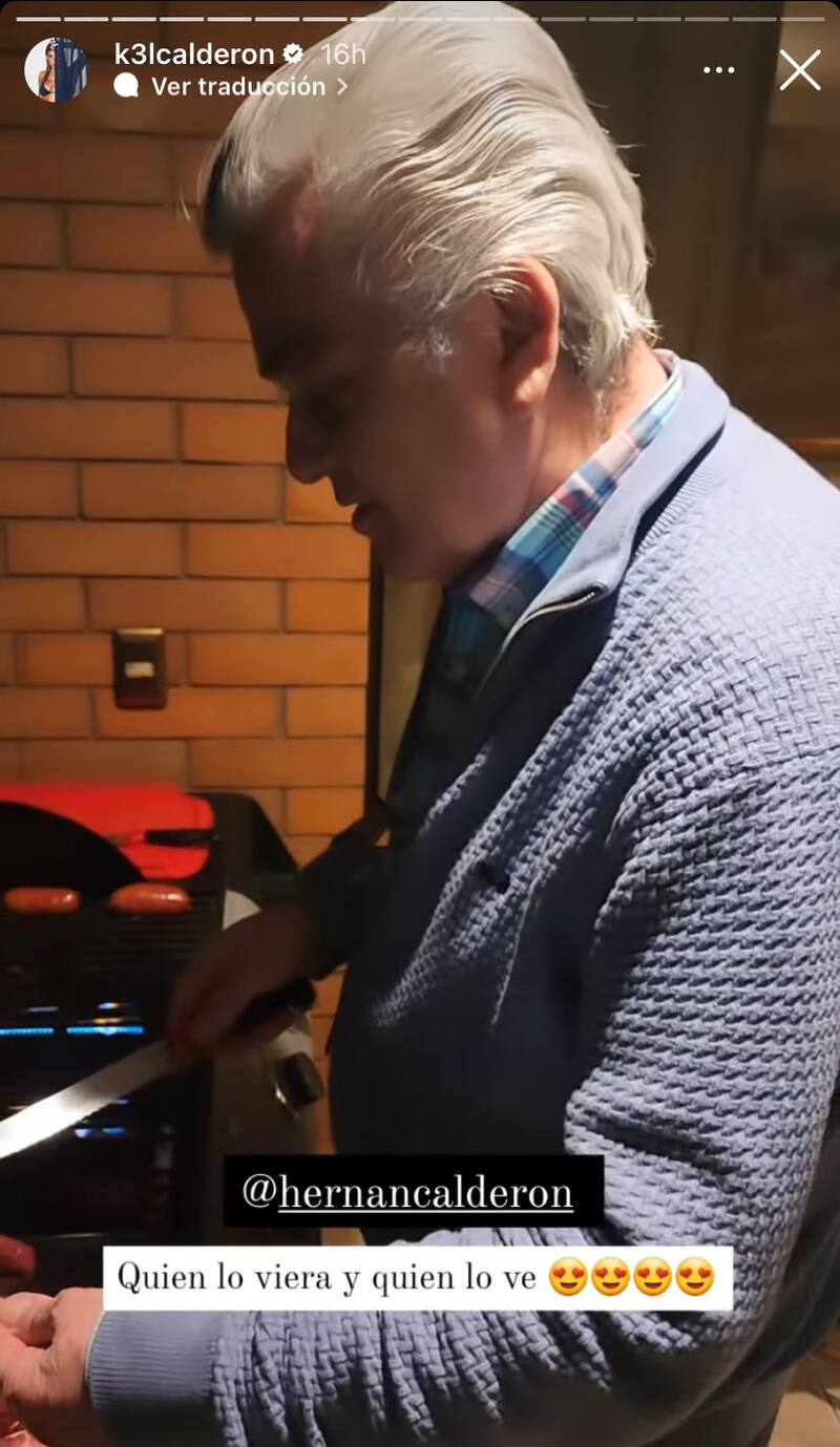 “Quien lo viera y quien lo ve”, escribió la joven en una publicación donde se puede ver a Hernán Calderón encargándose de la parrilla.
