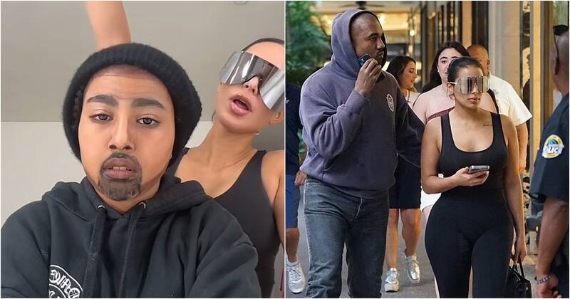 North aparece en el registro vestida y maquillada de tal forma que se veía igual a Kanye West, con barba, cejas y gorro negro incluido, y la canción “Bound” del artista de fondo.