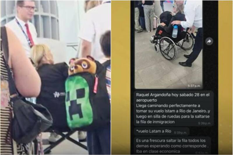 “Llega caminando perfectamente a tomar su vuelo Latam a Río de Janeiro y luego en silla de ruedas para saltarse la fila de migración. Es una frescura saltar la fila, todos los demás esperando como corresponde”, acusó una pasajera, quien fue la encargada de divulgar las imágenes.