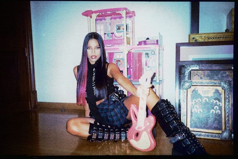 En los registros, la artista está vestida con una minifalda, algo que es muy común en su look; un peto y unas fotos hasta la rodilla. Sin embargo, todo lo que rodea a las imágenes son juguetes y ella está en poses sensuales.