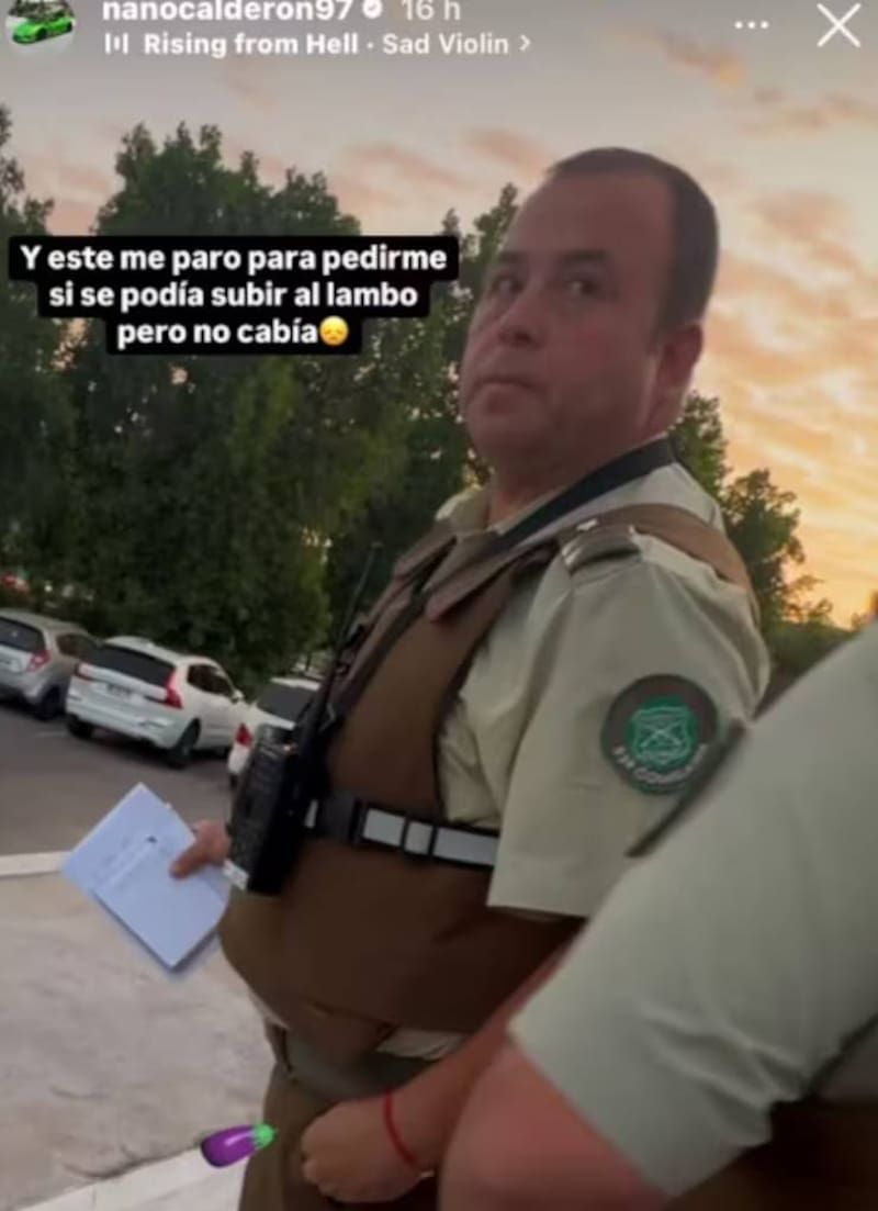 Sin embargo, Calderón fue más allá y también se fue en picada contra otro carabinero. “Este me paró para pedirme si se podría subir al lambo, pero no cabía”, lo troleó.